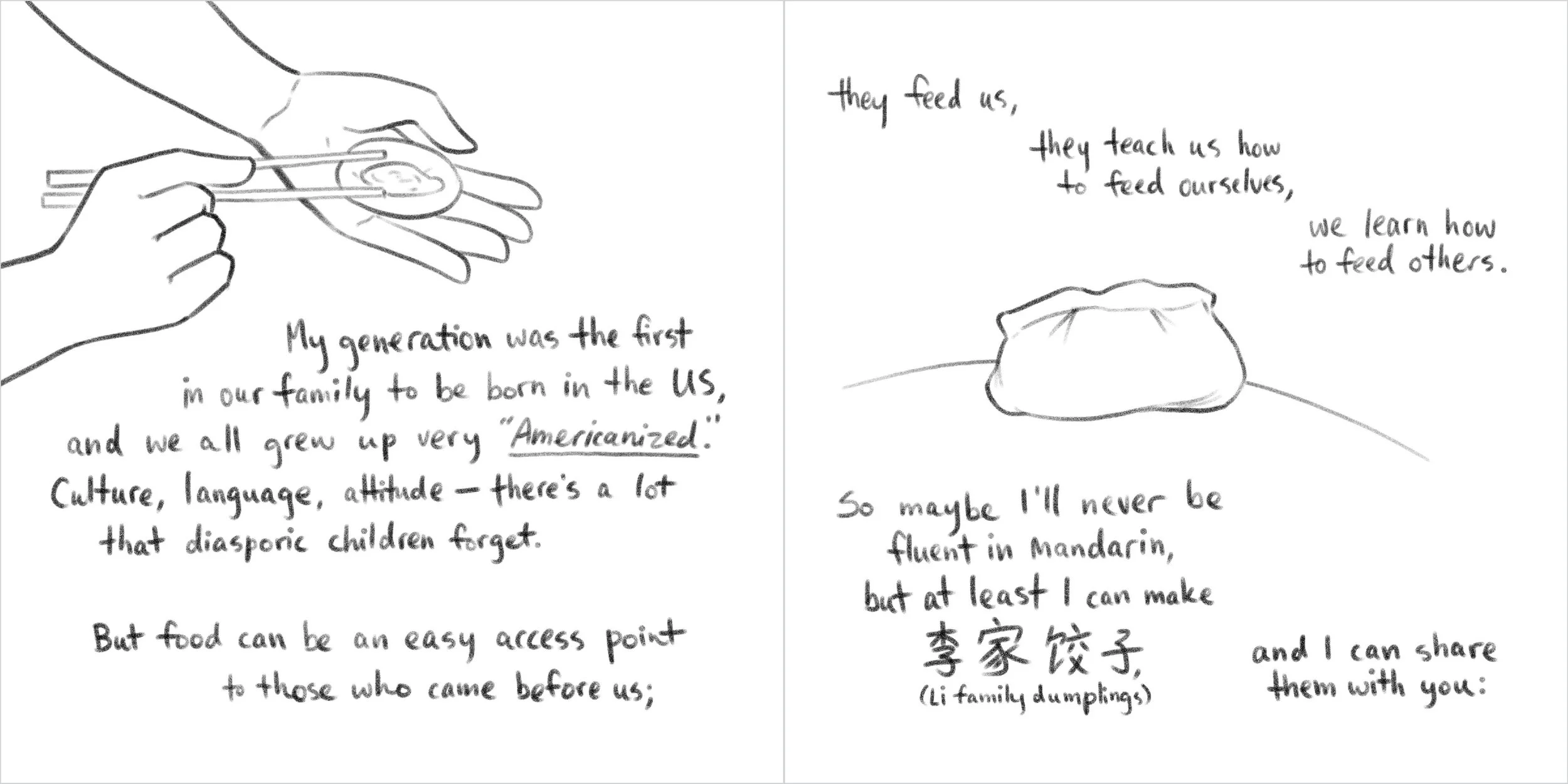 A little instructional zine on how to make dumplings, the Li family way.